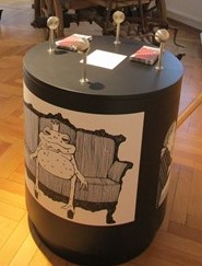 Über eine Erzähltrommel kann man live erzählte Märchen von Franz Xaver von Schönwerth hören.