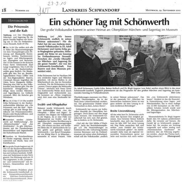 Veranstalter: Franz-Xaver von Schönwerth-Gesellschaft in Verbindung mit E.ON Bayern und dem Oberpfälzer Freilandmuseum Neusath-Perschen