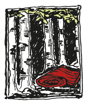 Wie wieder Markttag war, gab er ihr ein Stück Leinwand, um es zu verkaufen. Das Weiblein musste durch ein Birkenwäldchen gehen. Da sah sie, dass die Birken ganz nackt dastünden. Auch ging ein starker kalter Wind, dass sie fror. So sagte sie zu den Birken: "O ihr armen Dinger, wie muss euch frieren, da ihr nicht einmal ein Hemd anhabt. Friert mich schon so arg, und hab ich noch mein Gewand an." Sie riss daher ihre Leinwand in Streifen und band um jede Birke einen, so lange es eben reichte. "Nun habt ihr doch wenigstens einen warmen Fleck", tröstete sie die Bäume und ging dann wieder heim.